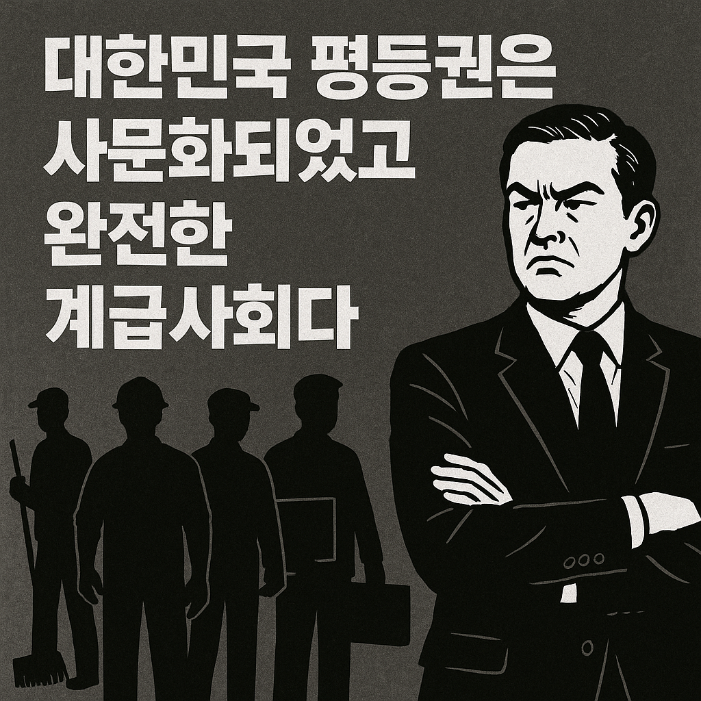 결론은 하나다. 대한민국에서 평등권은 법조문 속 박제된 이상향일 뿐이다. 우리가 사는 곳은 계급사회다. 계급을 부정하는 건 현실 부적응자들의 자기 위로일 뿐이다. 이제 그만 유토피아의 환상에서 깨어나야 한다. 환상은 아름답지만, 현실은 뻔하다. 우리는 이미, 완전한 계급 속에 살고 있다.