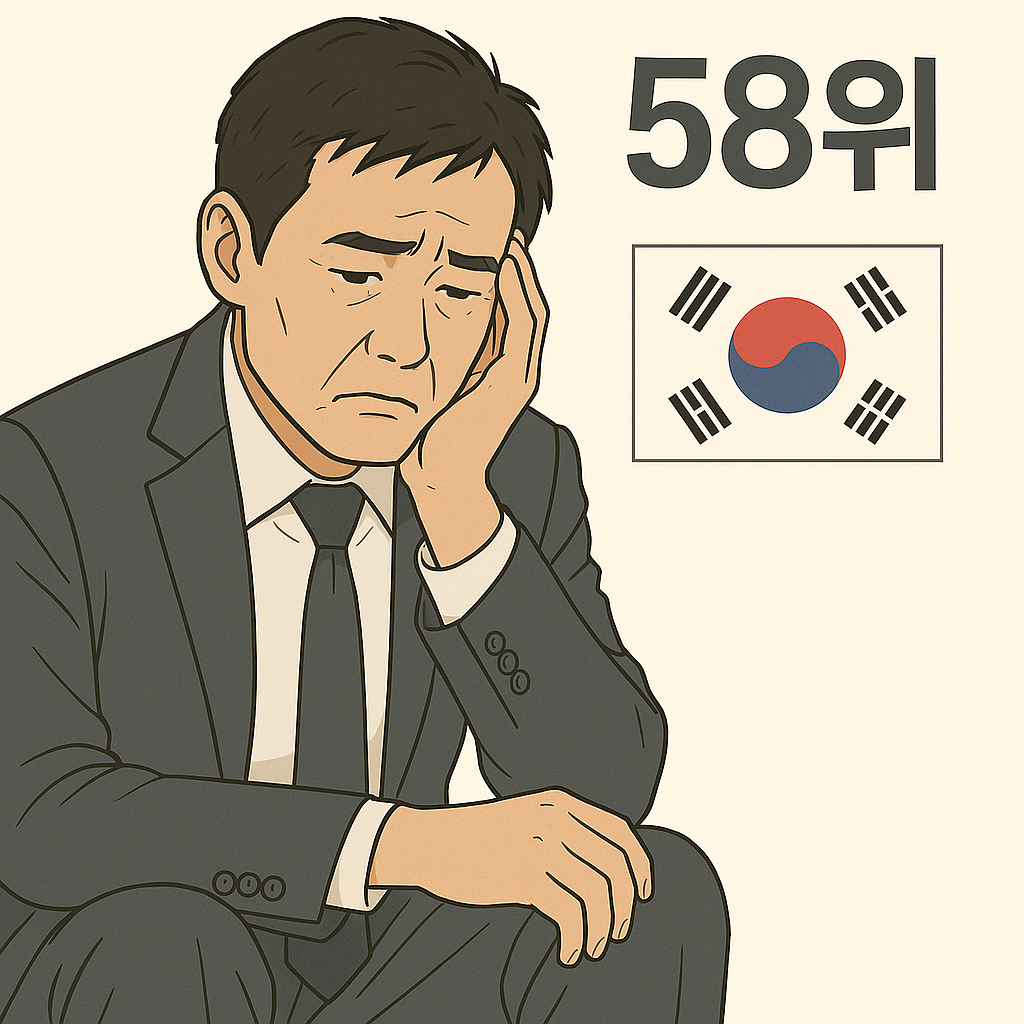 한국의 세계행복지수가 올해 58위라는 발표가 나왔다. 가볍게 넘기기에는 무겁고, 깊게 들여다보자니 익숙한 피로감이 몰려온다. 유엔 산하 지속가능발전해법네트워크가 발표한 ‘2025 세계행복보고서’는 GDP, 기대수명, 자유, 관대함, 부패 인식 등 6가지 항목으로 점수를 매겼지만, 결국 질문은 하나다. "당신은 지금 행복한가?" 한국인의 대답은 대체로 고개를 돌리며 침묵하거나, 짜증 섞인 한숨이다.
